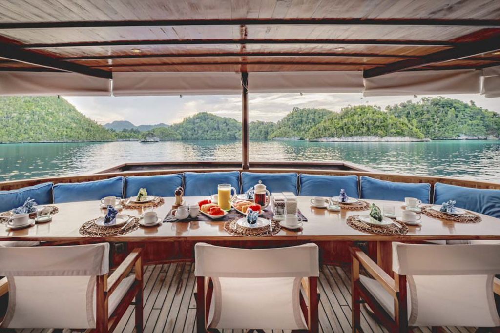 Rascal’s experienced crew of ten includes a western cruise director, a dive guide and a talented private chef. This modern luxury yacht is the perfect choice for families or friends looking for a stylish sailing sojourn in Indonesia.